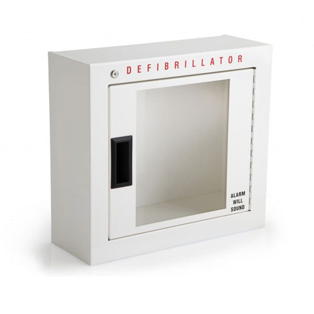 This surface-mount AED cabinet is specifically designed to hold Philips HeartStart AED devices. The sturdy metal construction of this wall cabinet protects and prominently displays your Philips AED. Door-activated audible alarm alerts everyone the AED has been deployed for rescue. Alarm requires 9-volt battery (not included).
