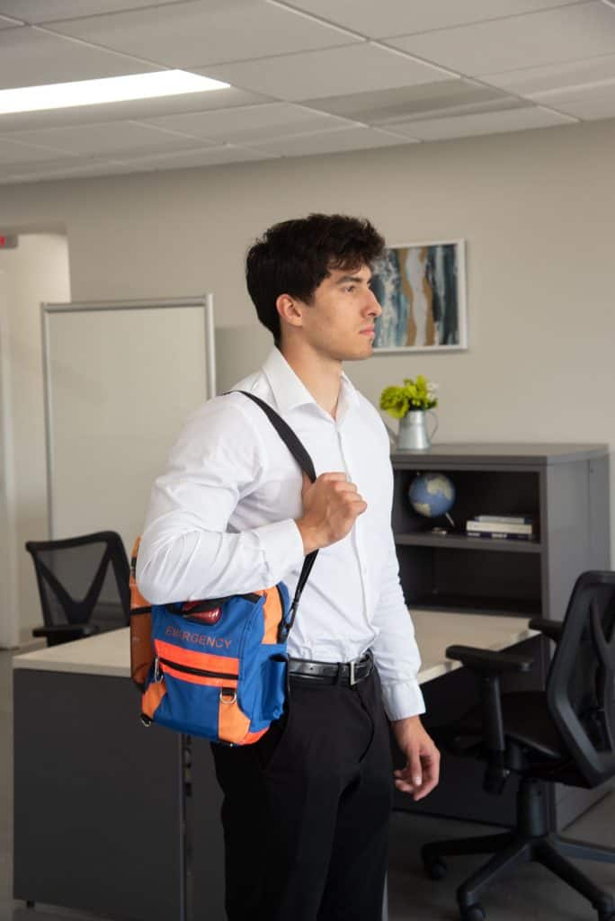 3 days of essential supplies in a high-visibility shoulder bag with integrated LED Flasher